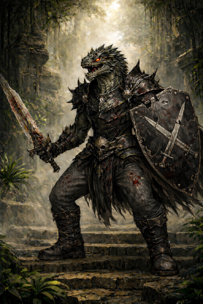 Estas criaturas, repti-humanoide, las creó el propio Zumdhor para imponer su ley a golpe de espada y terror. Son muy hábiles en el arte de la guerra, tanto que su crueldad parece no tener límites, sin contar con la de su creador claro. Debido a su corpulencia son unos seres muy fuertes pero tambien les hace lentos frente a otros guerreros.